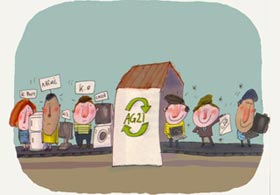 Aujourd'hui, les déchets électriques sont tenus d'être triés et dépollués. Et comme on consomme de plus en plus de produits électroménagers et d'ordinateurs, il y a du boulot ! » Et c'est tant mieux. Car Auch n'est pas franchement un bassin d'emploi. Les jeunes partent travailler à Toulouse ou à Bordeaux et ceux qui restent sont bien désœuvrés. L'association emploie donc des publics fragilisés afin de les ramener vers l'emploi: RMistes, handicapés, jeunes sortis de foyer ou de prison. L'association s'organise en plusieurs pôles d'activité qui permettent de se réadapter progressivement au monde du travail.