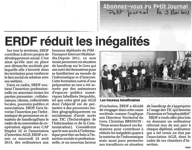 LE PETIT JOURNAL DE NOGARO : ERDF réduit les inégalités (03/05/2013)